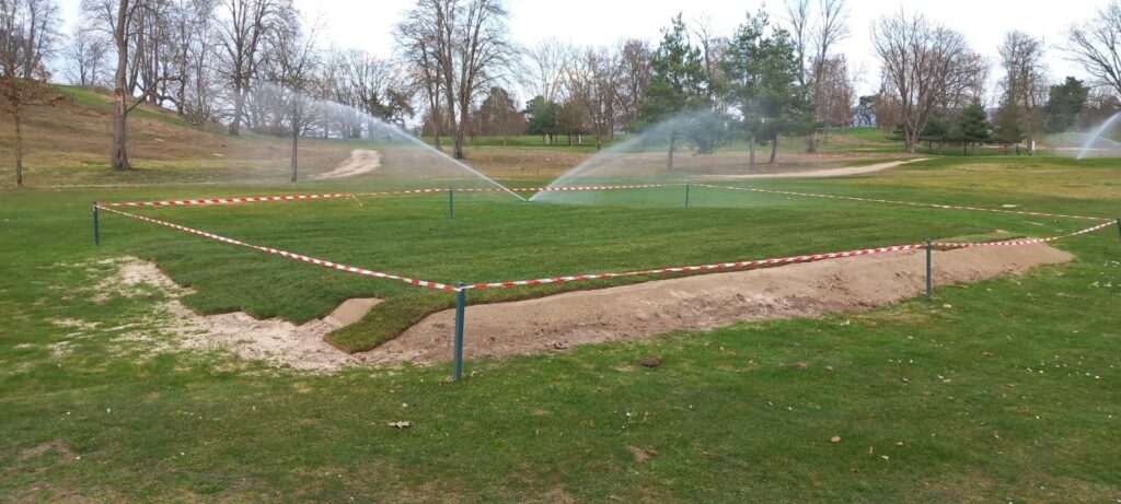Die Grüns werden für die Belüftung vertikutiert, anschließend erfolgt das Topdressen. In dem Zusammenhang werden die Greenkeeper auf Wintergrüns umstecken. Die Sommergrüns dürfen in der Zeit keinenfalls betreten / bespielt werden. Wir bitten um Beachtung, vielen Dank!